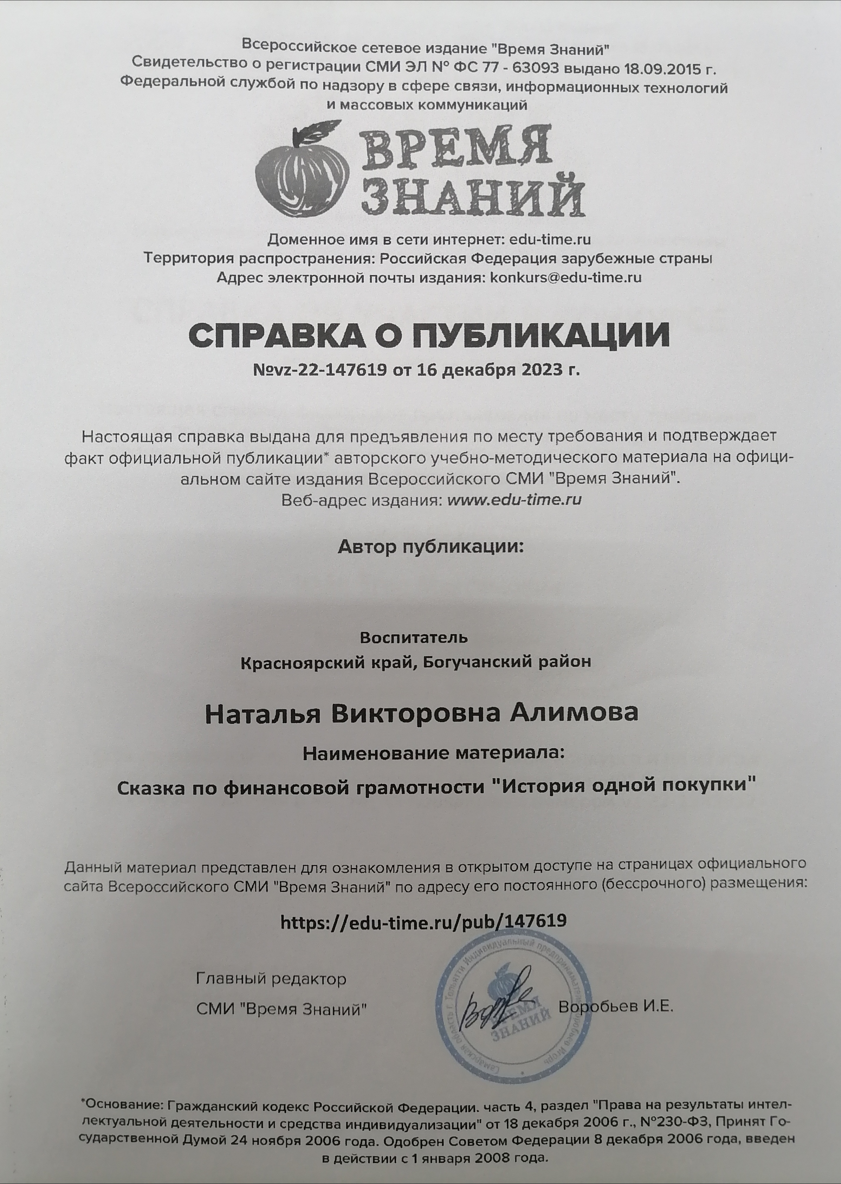Сайт воспитателя Алимова Наталья Викторовна